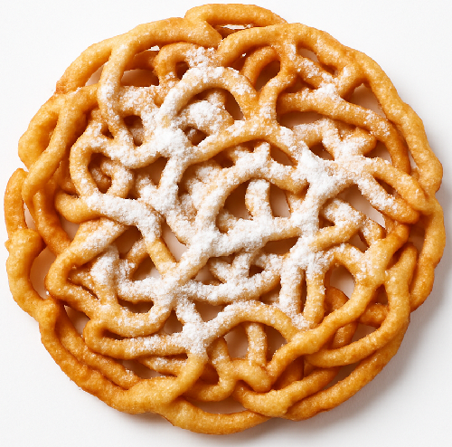 ~ A timeless fairground delight, our Classic Funnel Cake with Powdered Sugar is a golden lattice of deep-fried perfection. Poured through a funnel into hot oil in a delicate swirl, each cake is fried to a crisp-yet-tender finish, creating a light and airy texture with irresistible crunch.